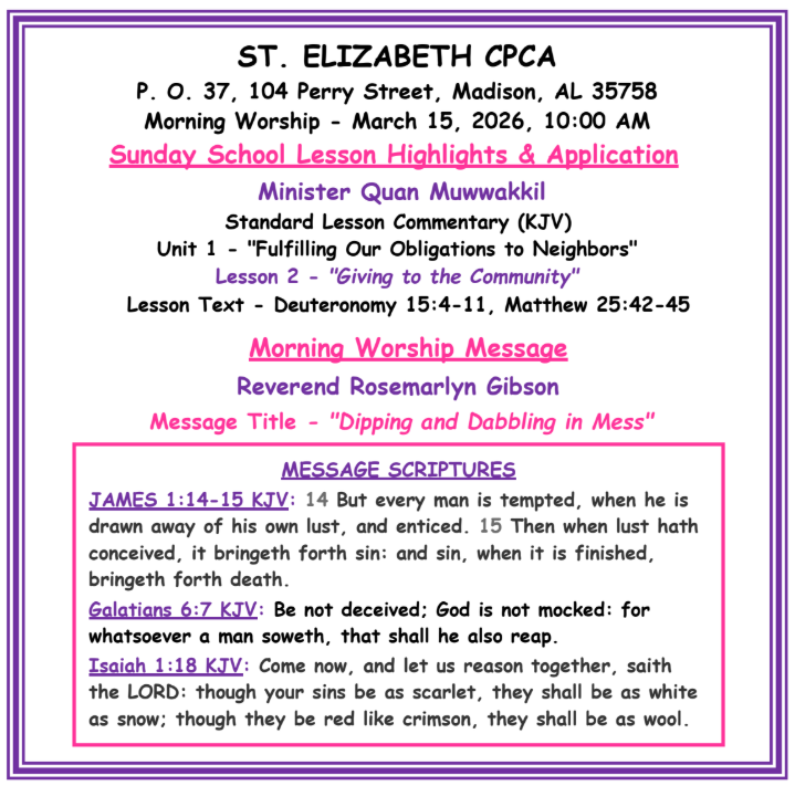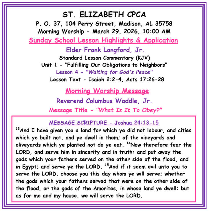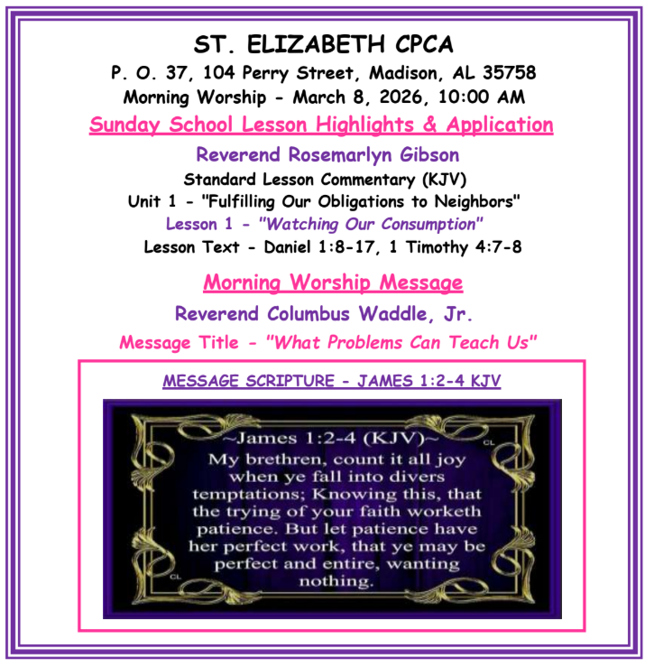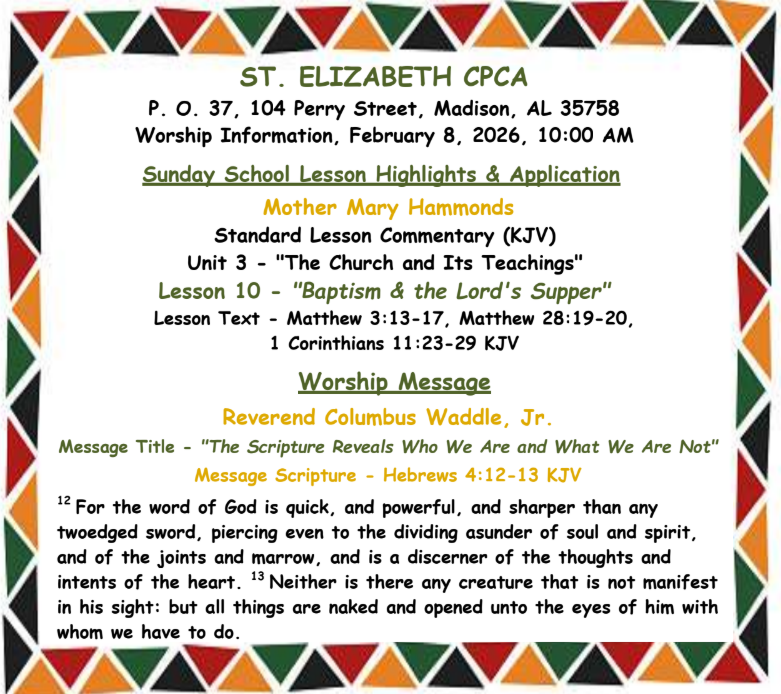 Welcome To The St. Elizabeth CPCA Church Website